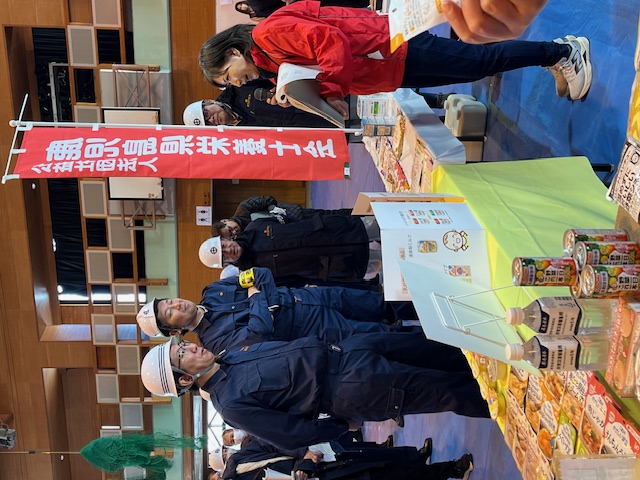 体育館では、特殊栄養食品ステーション設置訓練・ローリングストック展示説明を行いました。